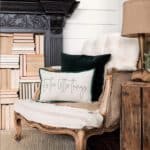 This farmhouse accent chair is dreamy. I absolutely love the reapolstering chair trend right now. Wingback chairs and armchairs are perfect to do a diy step by step chair makeover. It’s a great no-sew before and after inspiration project. And that black fireplace mantel is amazing. #reapolsteredchair #diywingbackchair #wingbackchair #farmhousechair #accentchair #fixerupper